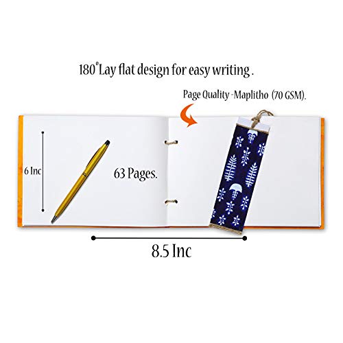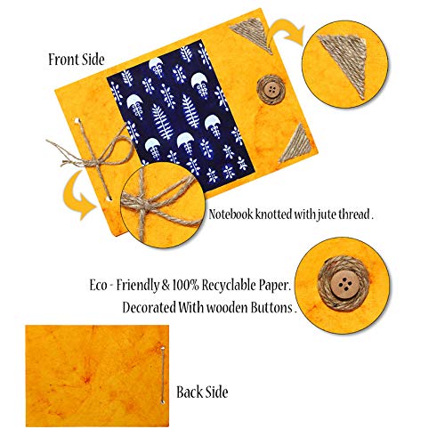 It is an eco-friendly handmade jute thread knotted notebook with 100% recycled paper. The cover is of handmade design with cardstock cover page of 70 gsm. It has a beautiful handmade designer bookmark to bookmark the last reading page. Writing in this unruled notebook is easy as it can be laid at 180 degree flat. This notebook consists of high quality nh pages of 70 gsm. It is a thin notebook consisting of 63 pages. It easily fits in any hand purse or bags, convenient and easy to carry. Highly durable and functional, this decorative record book can be used for writing, sketching, noting, jotting, or recording personal as well as professional activities. Designer notebook can be used to gift women and men on birthday, valentine’s day, mother’s day, father’s day, children’s day and can be used for personal usage also. Crafted with the finest material and decorated with wooden buttons. This record book should be protected from water as it is made up of paper.