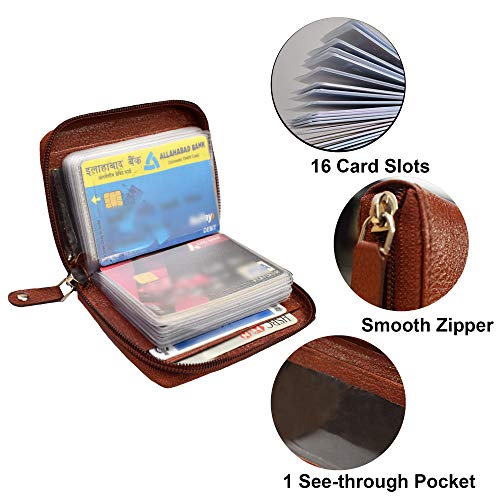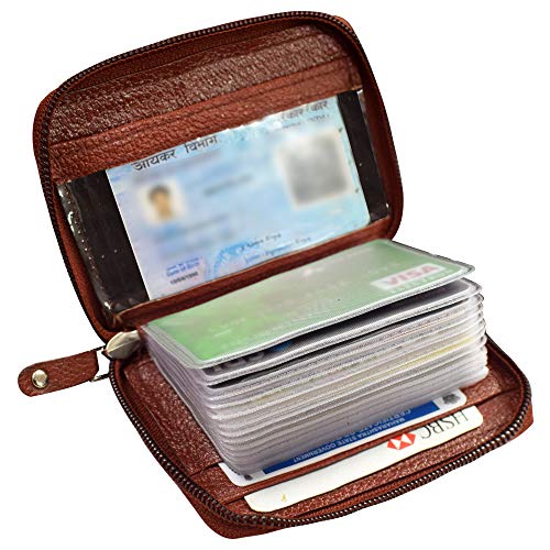 ABYS presents Genuine Leather light weighted and classy Card Holder with Zipper closure. It has ample Space For Debit, Credit and Id Cards. On the right side,it has 2 Card Slots. On the left side it has 1 Id Slot. There are 16 card slots in the middle. This wallet is ideal for Men and Women for carrying their cards.