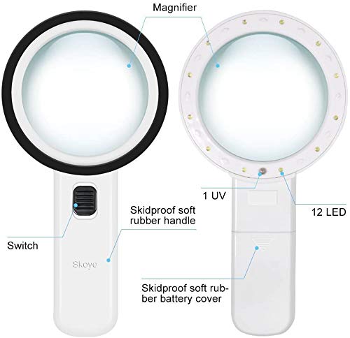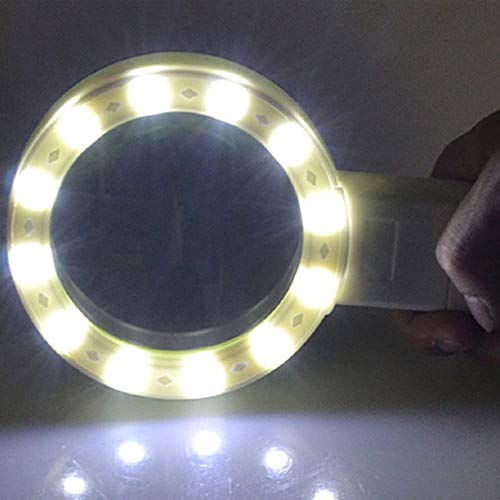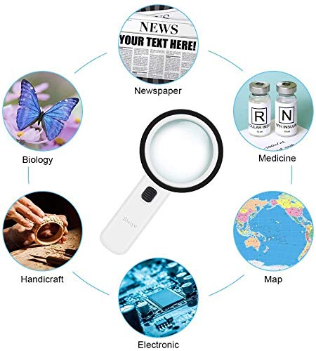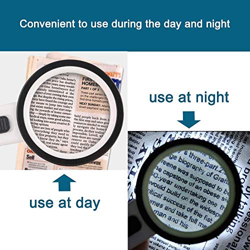 Perfect Brightness: This handheld magnifier with 12 pcs LED lights, the bright light gives an extra boost while using, do a good job illuminating what is being looked at. Especially help people with macular degeneration see better.