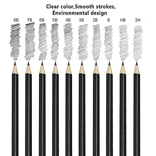 This Set of Professional Drawing Pencils Made by High Quality Graphite That Can Create Both Broad Strokes and Precise Lines and Are Encased in Lightweight and Durable Basswood. pencils come in a range of hard to soft graphite (8B,7B, 6B, 5B, 4B, 3B, 2B, B, HB, F, H, 2H). Scratch resistant and durable leads. Set includes all range of drawing fine art pencils for detail and professional drawing work, sketching and doodling.