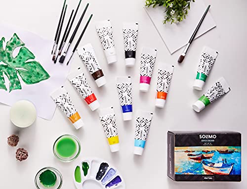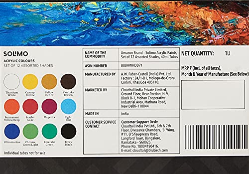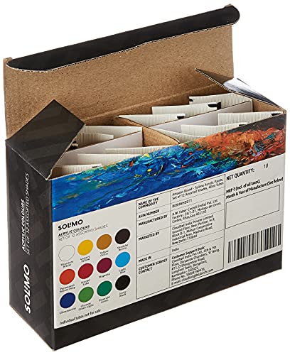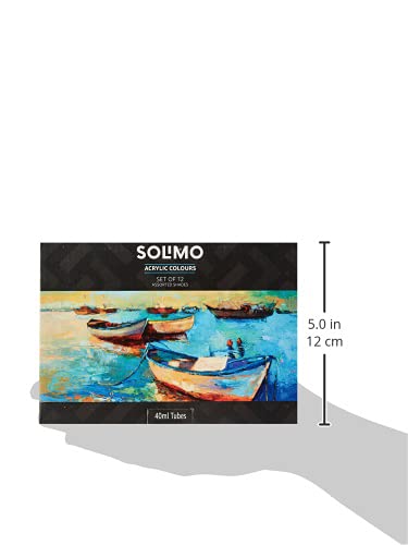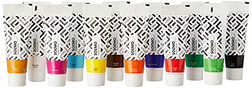 Amazon Brand – Solimo Acrylic Paints, Set of 12 Assorted Shades, 40ml Tubes