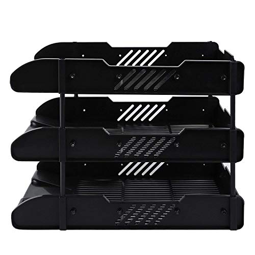 APURK 3 Tier Foldable Bookshelf Shelving Storage Rack | Home and Office Usable Tool | 3 Tier Horizontal Foldable Tray | Plastic Office/Desk/File/Paper Sorter Tray Holder Organizer