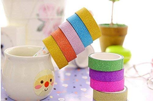 Colour: GLITTER, This is a set of 10 adhesive glitter tape rolls. The tapes in this set are shiny and glittery, perfect for decoration, art & craft and various creative projects. You can use these colorful tapes to decorate various items in your home. These tapes are also great for decorating gifts.