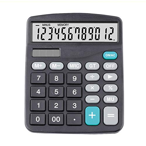 Calculator, Standard Function Desktop Calculator, Solar Battery Dual Power Basic Office Calculators, Black