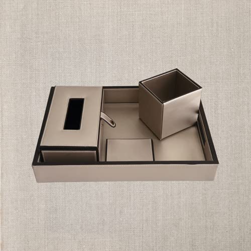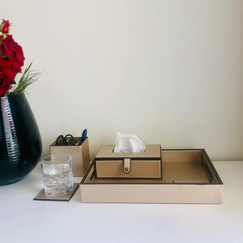 * Package Includes : Keep all your favourite stationary and essential office supplies in one place with this faux leather office desk organiser. It comes with a Pen Stand, Coaster Set, Anti skid Tray and a Tissue Paper Holder. A Must have for work from home.