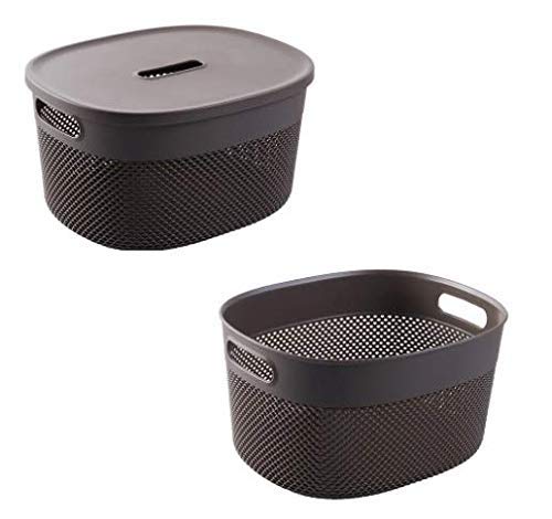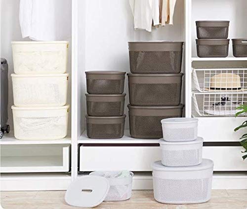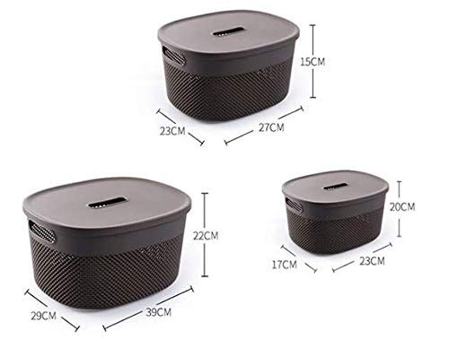 Package : 3 x Plastic Baskets With Lid (Brown)