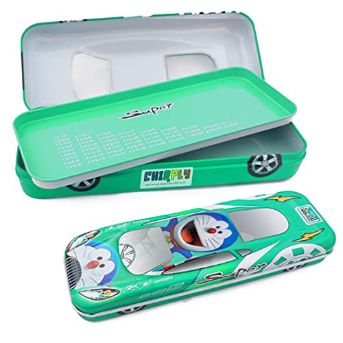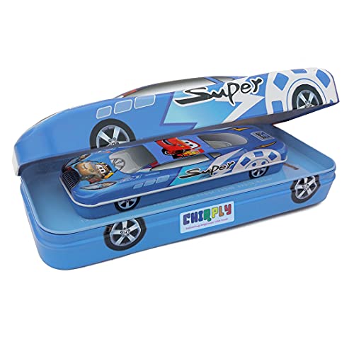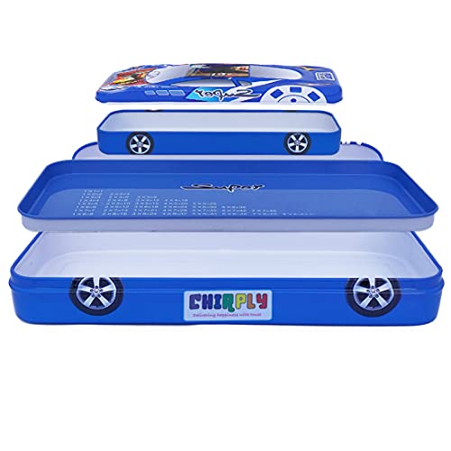 CAR SHAPE 2 in 1 PENCIL BOXES: This cool 2 in 1 car shape CHIRPLY brand pencil box has unique 3D design. This fancy pencil case has 2 cars, 1 big and 1 small. Metal based tin pen case. IDEAL GIFTING OPTION: Multifunctional, attractive design, stylish, and multicolor box is an ideal gifting option. Kid’s favorite super hero and animation character print would make the child want to have this to school every day and standout in the class. Use this CHIRPLY pen case as a gift for your child, relatives and friends on their birthdays, they will like it. SPACIOUS COMPARTMENTS: Not only for school accessories, it can be used as make up bag for little kids to put their cosmetics and other fancy accessories. Actual dimensions: 21 cm x 9 cm x 5 cm or 8.5″ x 3.5″ x 2″ (Inches). STRONG BUILD QUALITY: The box has strong build quality, made out of durable and quality metal. Easy to operate and clean. Use this stylish pencil box as return gift for your child’s birthday. Ideal for both girls and boys. CHIRPLY BRAND: Buy this CHIRPLY brand product with confidence. Each unit is thoroughly tested for all functions before shipping. Follow the main image for list of accessories included with this product.