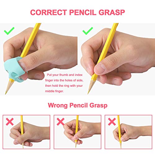 【Easy to Use】Pencil grips are easily used by left-handed and right-handed people. Put your thumb and index finger into the holes of side, then hold the ring with your middle finger.