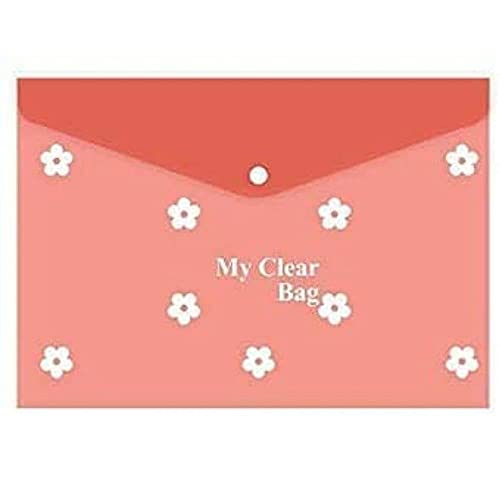 Transparent Envelope Holder Storage Case, Snap Button Organizer, Clear Flower Plastic Container For Papers, Stationery