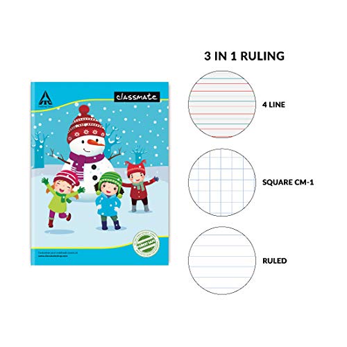 Pack of 4, 3 in 1 (ruled/four lines with gap/square – 1 cm), 172 pages, cover, 240mm x180mm