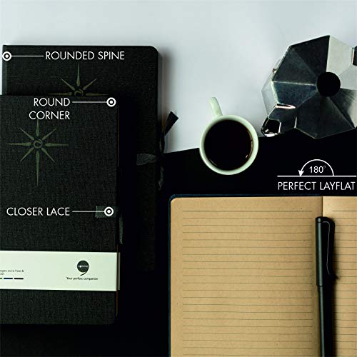 Each notebook consists of 192 pages of 100gsm Kraft paper (antique brown shade) which is acid free and resists ink smearing and bleedthrough. The sheets are of A5 size (21cm x 14.8cm) (8.3in x 5.8in), ruled on both sides with a line spacing of 7mm.