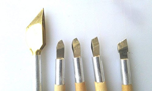 Has 5 Different shapes of tips for calligraphy writing . Wooden handles with metal tips .