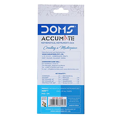 A pioneer in stationery manufacturing, DOMS Industries Private Limited, as we know it today, was founded in 1975 with a commitment to operational excellence and providing superior value to its customers and trade partners, as its founding principles.DOMS manufactures and markets a wide range of Stationeries and ArtMaterial including: Pencil & Accessories | Drawing & Colouring | Mathematical Drawing Instruments | Paper Stationery | Pen & Writing Instruments | Gifting | Marker Pens | Crafts & Hobbyist | Fine Art