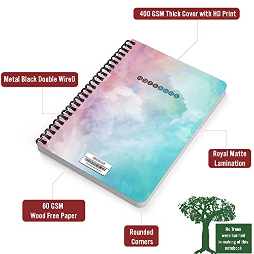 Cover: Thick 400 GSM, HD printNumber of Pages (both sides inclusive): 200Inner Paper Quality: 60 GSM Wood Free paper (recycled)Binding: Metal Wire bound (black)