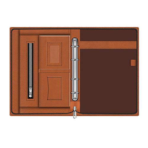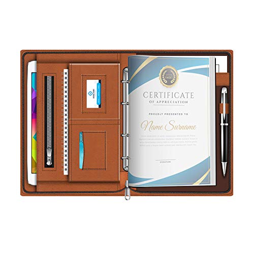 ORGANIZE EVERYTHING IN ONE PLACE – This premium PU leather business folder comes with a dual zipper for accessibility and security, as well as lots of pockets that includes: 20 transparent leafs Inner leaf size: 9.1 x 13.8 inches. 1 inch capacity, High quality 3 Ring Binder Can hold almost 80 sheets paper, one Big pocket, expandable pocket, zippered pocket, 1 business card slots, 1 credit/debit card slot, 1 pen slots, writing pad holder, etc.Folder size 15.5×10.5 inch.