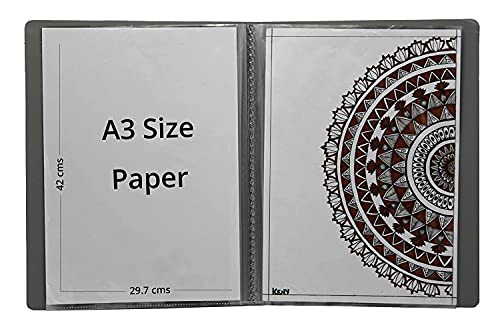 A3 Size Display File Folder, grey color, 40 transparent inner pockets which can store 80 documents