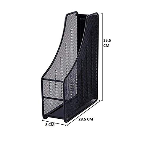 Material: Metal Mesh. Color: Black. Size: 35.5 X 28.5 X 8 CM , Package Includes: 1 Compartment Magazine/File Rack Case.