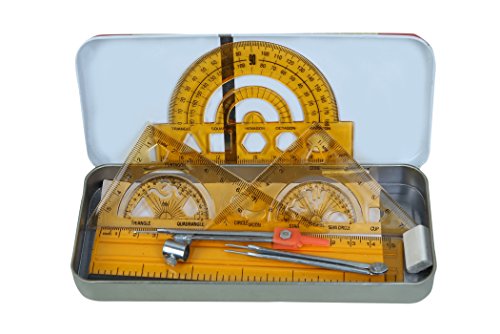 Pack contains 8 pcs include :1 Pencil, 1 Compass, 1 Divider, 1 Eraser, 1 Pratractar, 1 Rular, 2 Setsquares.