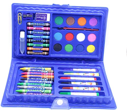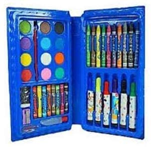 Colour box with multiple coloured pens, crayons, water colours, oil pastes, pencils Best result can be seen on drawing paper; These colours can adhere easily to surfaces like textured paper, sketching paper or even smooth tinted paper Best use for gifting in birthdays Product color, design and character will be assorted