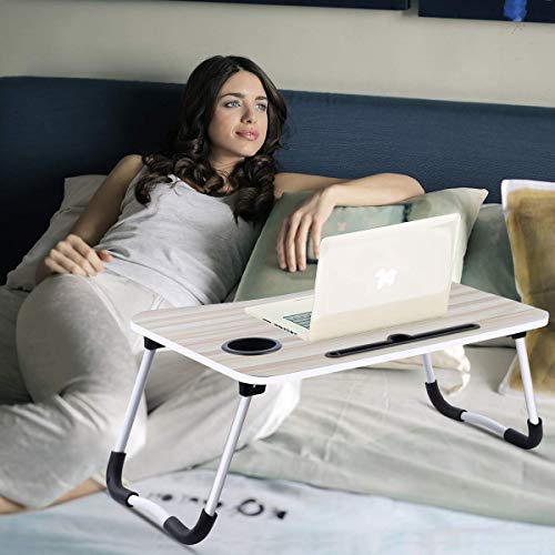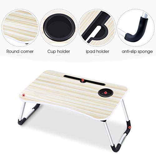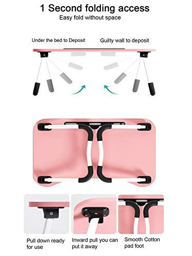 GION >> Multi-purpose table/desk 1.Durable and Sturdy structure: Made of powder-coated metal tubes and high-quality Engineered Wood top board. This Laptop Table have good compression resistance. 2.Multi-purpose table/desk: Not only work as a laptop table but also as a TV Dinner Tray, serving table for patients/kids, Standing Desk for office workers, Book Writing Desk for kids, Tablet Holder, Standing Desk/Stand Up table 3.Suitable from 5-year-old child to 80-year-old senior. A smooth surface laptop table can use for surfing the internet, reading book, painting work, enjoy leisure snack time, serving breakfast, enjoy family time on your bed, sofa, couch, floor, lawn etc. Indoor or outdoor. 4.Using it for simple dining table, laptop computer table, studying desk, serving table, or any other scenes you want for reading/writing/drawing/playing board games/models puzzles arts. Unique design and beautiful finish: It features anti-slip legs so that the laptop will not skid while using. No assembly required, foldable frame for easy carry and storage. Simple design make your life more fashion. Reasonable size 60cm x 40cm x 27cm (L x W x H). Fit for 15.6 or even for 17 inches laptop. You can use in the office, bedroom, car etc. Material: high density board+steel pipe