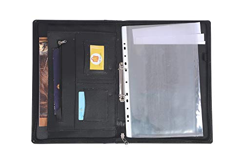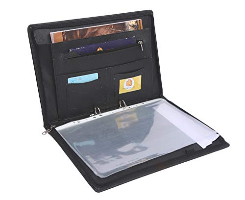Gold Professional 2 Ring Files and Folders, documents, certificates Holder Bag – to Store Your Important FS Size Documents. (Black, File with 10 Leafs)