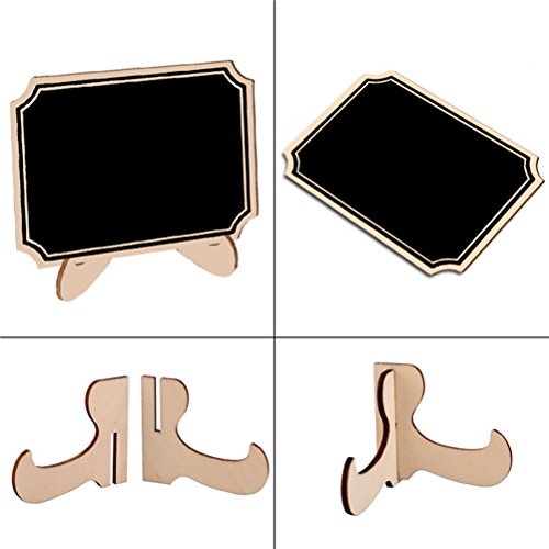 – This set of 10pcs mini chalkboard signs makes it easy for you to share messages with your guests in style. Just write a short message on the chalkboard surface and set up these signs to mark places at a wedding or dinner party, label foods a buffet, or alert customers to special sales at your store. When you want to change the message, just wipe your chalk marks away and write something new on these erasable, reusable signs.