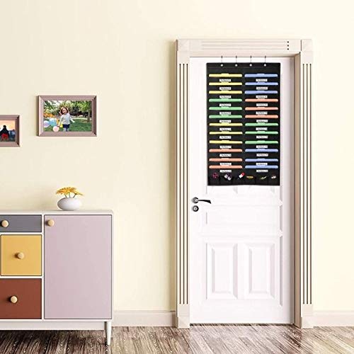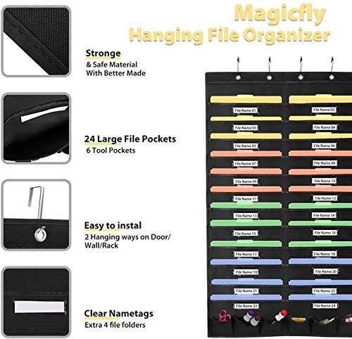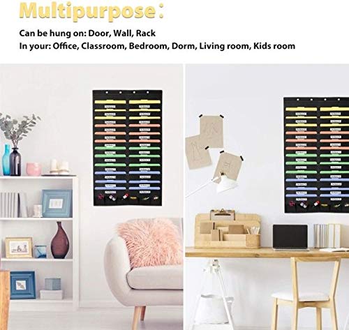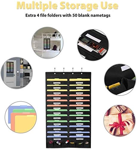 【24 pockets & bonus Accessories】The perfect size of storage pocket chart for door hanging organization for files, compatible for common doors. Large capacity with 24 pockets (2 rows * Dozen pockets per row) for more files, extra 6 tool pockets for kinds of Office tools storage.