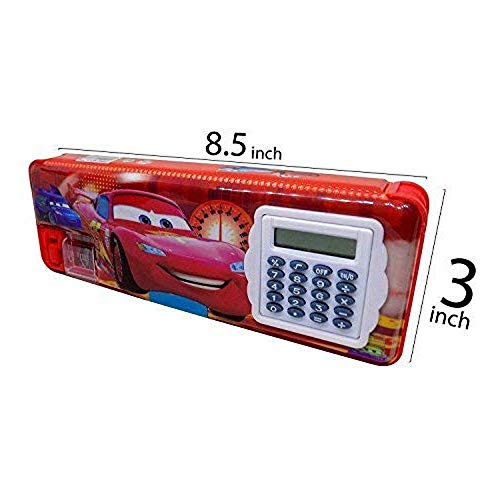 IZU Multipurpose Magnetic Pencil Box with Calculator, Dual Sharpener for Girls & Boys for School, Big Size Cartoon Printed Pencil Case for Kids. (CAR)