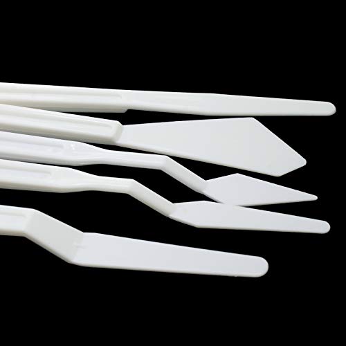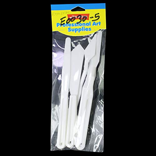 1. Material: Plastic, Approximate Size LxBxH: . 2. Set Contains 5 assorted painting knives, 3 cranked handles and 2 flat. 3. The Simple 5 Palette Knives Set is ideal for all kinds of painting and crafting projects. 4. Safer to use than metal knives, these one-piece molded plastic knives are economical, durable and easy to clean. 5. Ideal to add texture and body to acrylic and oil paints.