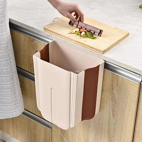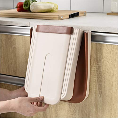 [EASY TO INSTAALL] : Just attach the compact folding trash can to any cabinet drawers or doors.