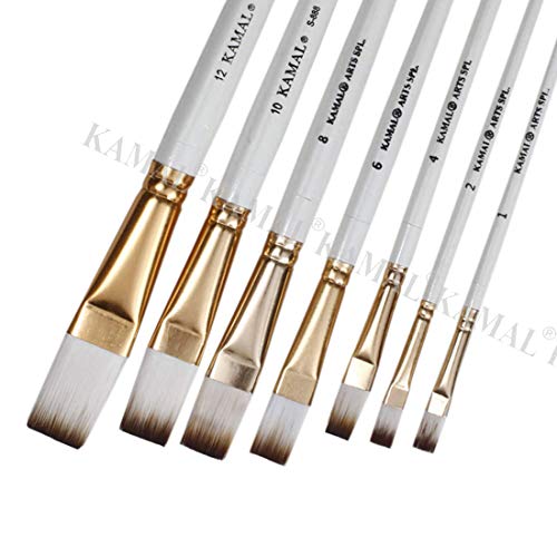 High Quality 7 Piece flat Synthetic hair Brush Set in Sizes Ranging from Small to Large, So You Can Get the Brush with the Right Size When You Need It. Brush Numbers- 1,2,4,6,8,10,12.