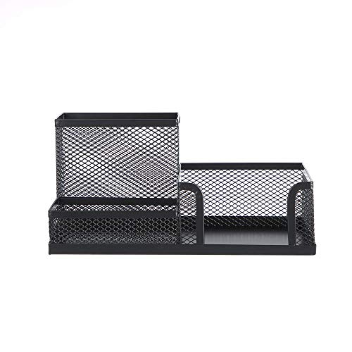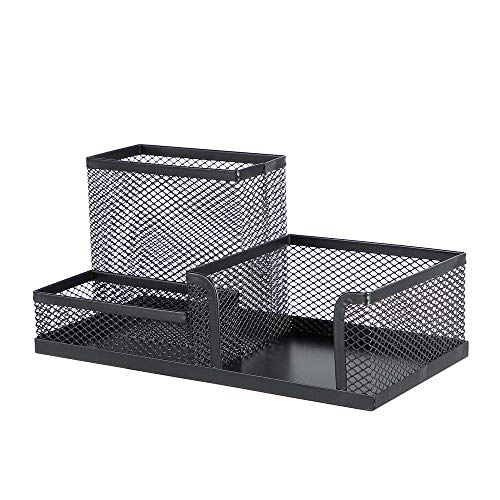 Package:1x Metal Mesh Pen Holder, Color: Black, 3 Compartments.