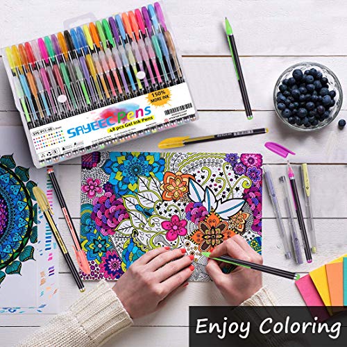 Smoothly Drawing & Coloring— 48 Colored Gel Pens are perfect for writing, drawing, sketching and coloring books.Whether you are using this set to add a splash of color to your doodles, embellish your scrapbook, or fill the pages of your adult coloring book… it will surely make you feel like a professional artist.