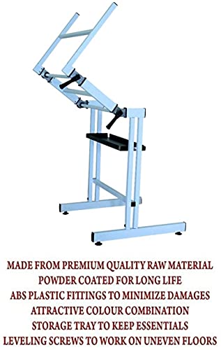 FULLY ADJUSTABLE TABLE TO AVOID BACK PAINS – Work conveniently with the fully adjustable height and angle lever system and leveling screws at the bottom to work easily on uneven floors. Also, storage of your essentials is never a problem with the bottom wide tray.