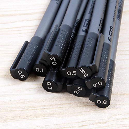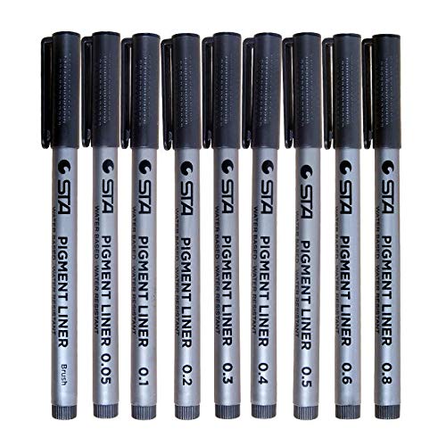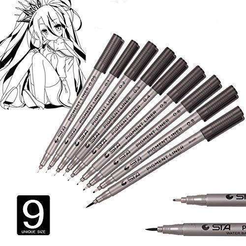 Packing information: – 8 x Micro-line pens(0.05mm,0.1mm,0.2mm,0.3mm,0.4mm,0.5mm,0.6mm,0.8mm) -1 x Brush pen High-Quality Archival ink Pens are non-toxic, water resistant water-based and acid-free with superior archival quality long lasting vibrant pigment inks that don’t smear, fade, bleed or skip. Convenient Storage Pens are stored in a convenient organizer pouch with individual spots to hold each pen, so you can always keep them neatly organized and ready for use. Makes a Great Gift Our Master Markers Micro-Pen Fineliner Pen Sets are an excellent gift item, as they are great for helping kids, teens and adults express their creative side. Great for the aspiring young artist, as well as the serious professional artist. Note: 1.Please draw with an even pressure to avoid bleeding. 2.Keep the tip perpendicular to the paper in order to draw lines with the same thickness. 3.After use, make sure you recap the pens to prevent them from drying out. 4.Suitable for children 3 and above