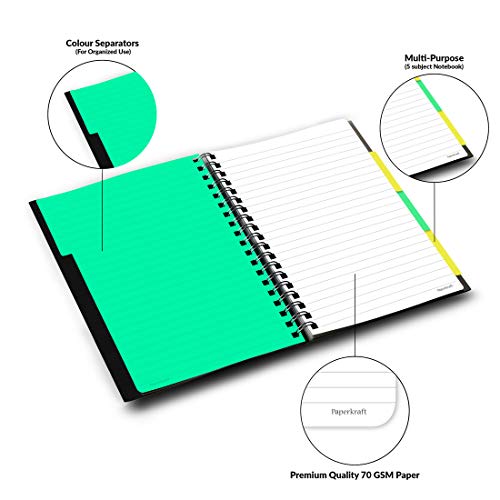 Single ruled wiro notebooks with 300 pages, detachable separators and 2 soft pouches to store documents