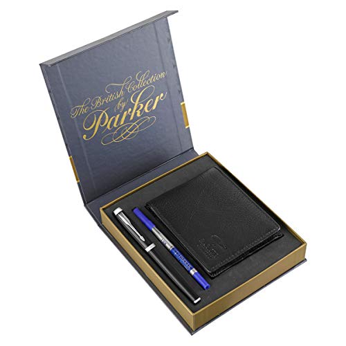 Parker Launches Premium Gift Set that fits Every Occasion , a great & premium combo with Premium packaging Parker IM Metal Black Roller Ball Pen with wallet (Chrome Trim)