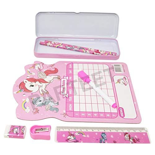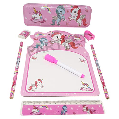 parteet mix stationery gift set with writing board and metal pencil box for kids – for birthday party return gift (pink)- Multi color