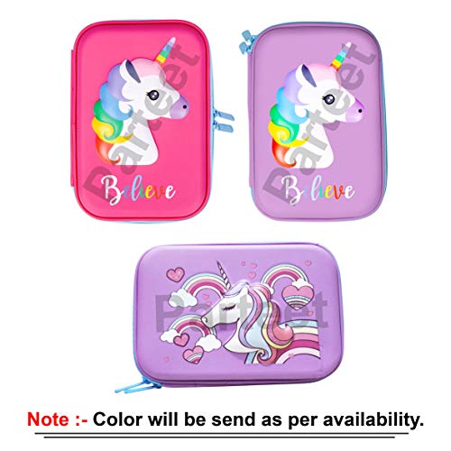 Big hardtop pencil case, light weight and shockproof. Large space, wide open mesh pockets allowing to store a variety of stationery items.2 layers storage pockets on right part, 5 pencil slot on inter layer.3D embossed on the top, looks cute and lively. Best gift for all occasions.
