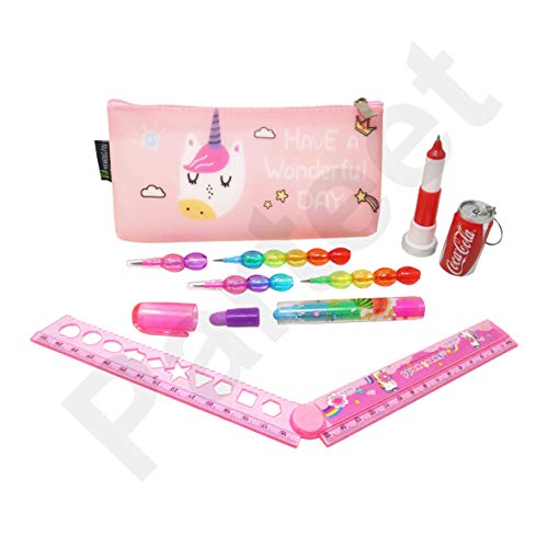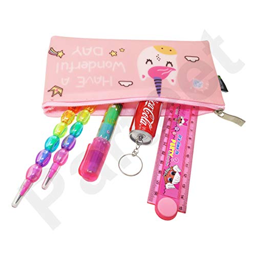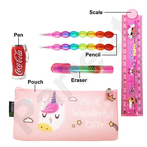 Package Include: 1 Pouch + 1 Key Chain Pen + 2 Stack Pencils + 1 Pen type Eraser + 1 Folding Scale