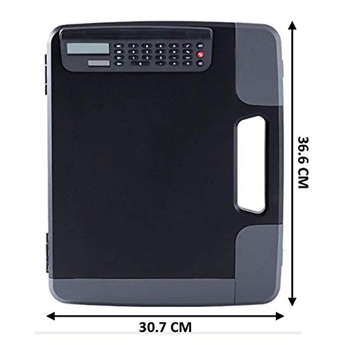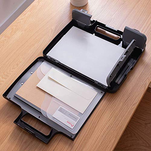 Heavy-duty clipboards provide stable writing surface and makes files easier to handle with calculator. Large compartment for letter size papers plus separate filing pockets for papers, CDs, and business cards.