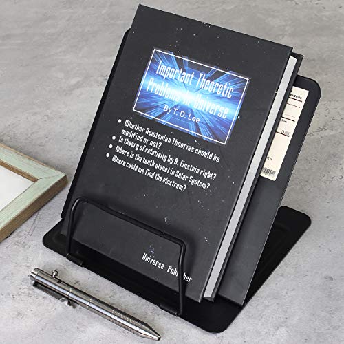 Learning Cooking Our book reading stand is particularly suitable for use in the kitchen to keep your recipes clean while cooking your food or workshop to display the working instructions. Free up your hands Choose a perfect viewing angle to free up your hands to prevent wrists pain, neck and shoulder tension, headache as well as eye strain from a long time book reading or video watching. Easy storage This book page hold is foldable and compact for easy storage when not in use and can be carried in a backpack.