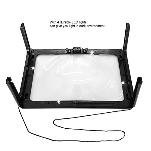 FIRST QUALITY FROM PIA INTERNATIONAL.. . 100% BRAND NEW.. . Description: The reading magnifier comes with 4 durable LED lights, equipped with a 3X magnification glass. The glass face is clean and clear due to its high definition. It can be hung around the neck and put on the desk. Suitable for the old people or people with poor eyesight. Features: 1. High definition glass face. 2. With 3X magnification glass, reduce the strain on your eyes when reading. 3. Can be hung around the neck and put on the desk, very convenient to use. 4. With 4 durable LED lights, can give you light in dark environment. 5. Perfect gift for old people and people with poor eyesight. 6. Lightweight, easy to carry and use. Specifications: Item Type: Reading Magnifier Material: ABS Color: Black LED Quantity: 4 Battery: AAA Battery * 2 (Not Included) Glass Size: Approx. 240 * 162mm / 9.4 * 6.4in Frame Size: Approx. 275 * 200mm / 10.8 * 7.9in Weight: Approx. 284g Package Included: 1 * Reading Magnifier (Not Included Battery)
