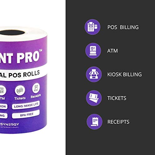 PRINT PRO Thermal POS Rolls are high sensitivity Direct Thermal Paper rolls which offers you accurate, crisp and fast printing. KNOWN FOR: Dark Impression Long Image Life Clear & Crisp Printing BPA Free Application include: POS Biling ATM Kiosks Tickets Receipts Compatible with: Cash Register Machines, ATM Machines , Credit Cards Machines , Billing Machines for Retail Stores & Restaurants & All types of POS Machines.
