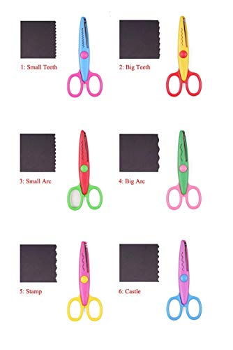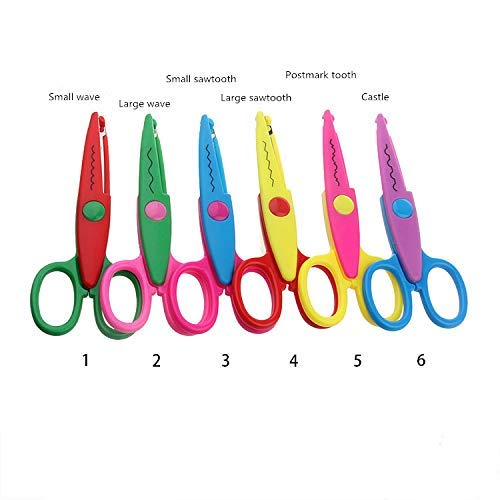 Make your decorative paper craft stand out with this 6 Pcs Color ZigZag Scissor Set. Give attractive edges to chart papers, greeting cards, photo frames and design attractive designs for scrapbooks, gift boxes and much more. Each scissor has a unique and different design pattern. The cutting pattern is printed on the scissor itself. The handles are made of ABS plastic and the blades are made of stainless steel. They are lightweight to handle, so that kids can grip them comfortably. Blades lock in place for cutting.