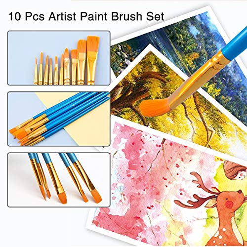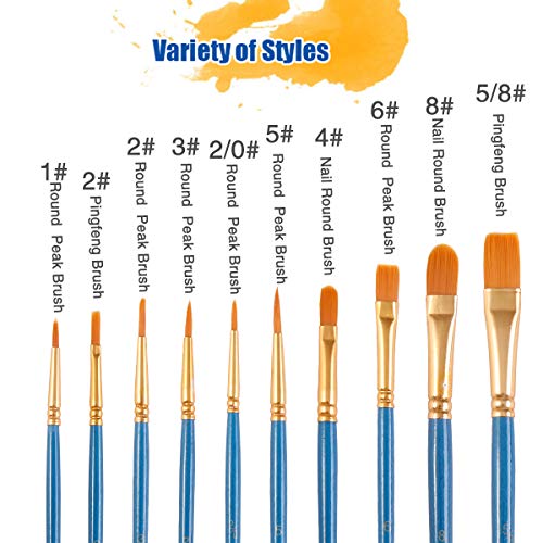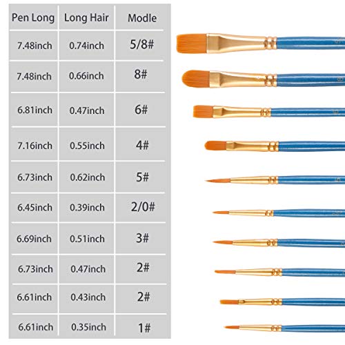 SET OF 10 FULL RANGE SHAPES PAINT BRUSH – Small, medium and large thickness, as well as round, angular and angle shapes with a razor sharp tip capable of complementing any palette.