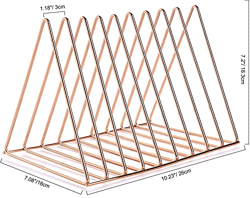 PERFECT FILE FOLDER HOLDER for DESKTOP: Unlike many similar book magazine sorter racks, our desktop file holder is 10.24” long, with 9 wide slots, which hold more records, newspapers, books or files on your desktop, shelf, record stand table,cabinets or floor.