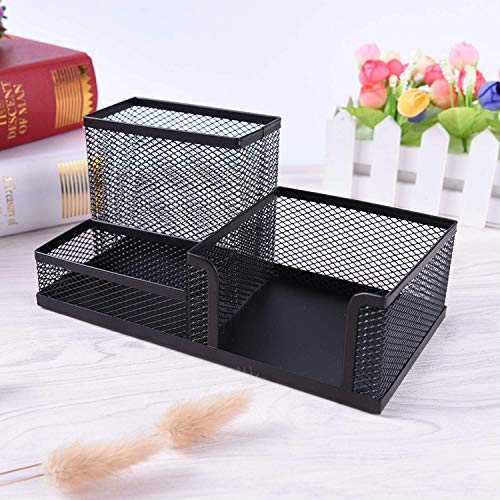 Metal Mesh Office Stationary Pen,Pencil,Mobile Storage Holder Organizer Box With 3 Multi Sized Compartments