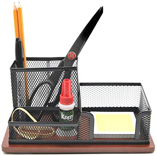 Office desktop caddy organizer, great for keeping your desktop neat and tidy. Made of durable scratch resistant steel wire mesh with a reinforced metal rim. Features 3 compartments drawer for pads, papers, pen/pencils, note pads, supplies etc.