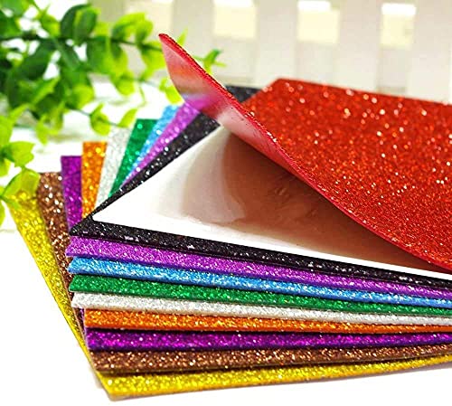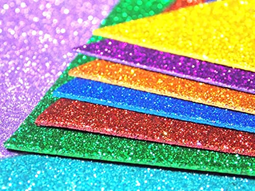 Size: 30 x 20 cm. Package Contains Pack of 10 Easy to Peel Self Adhesive A4 Glitter EVA Foam Sheets in Assorted Colors.
